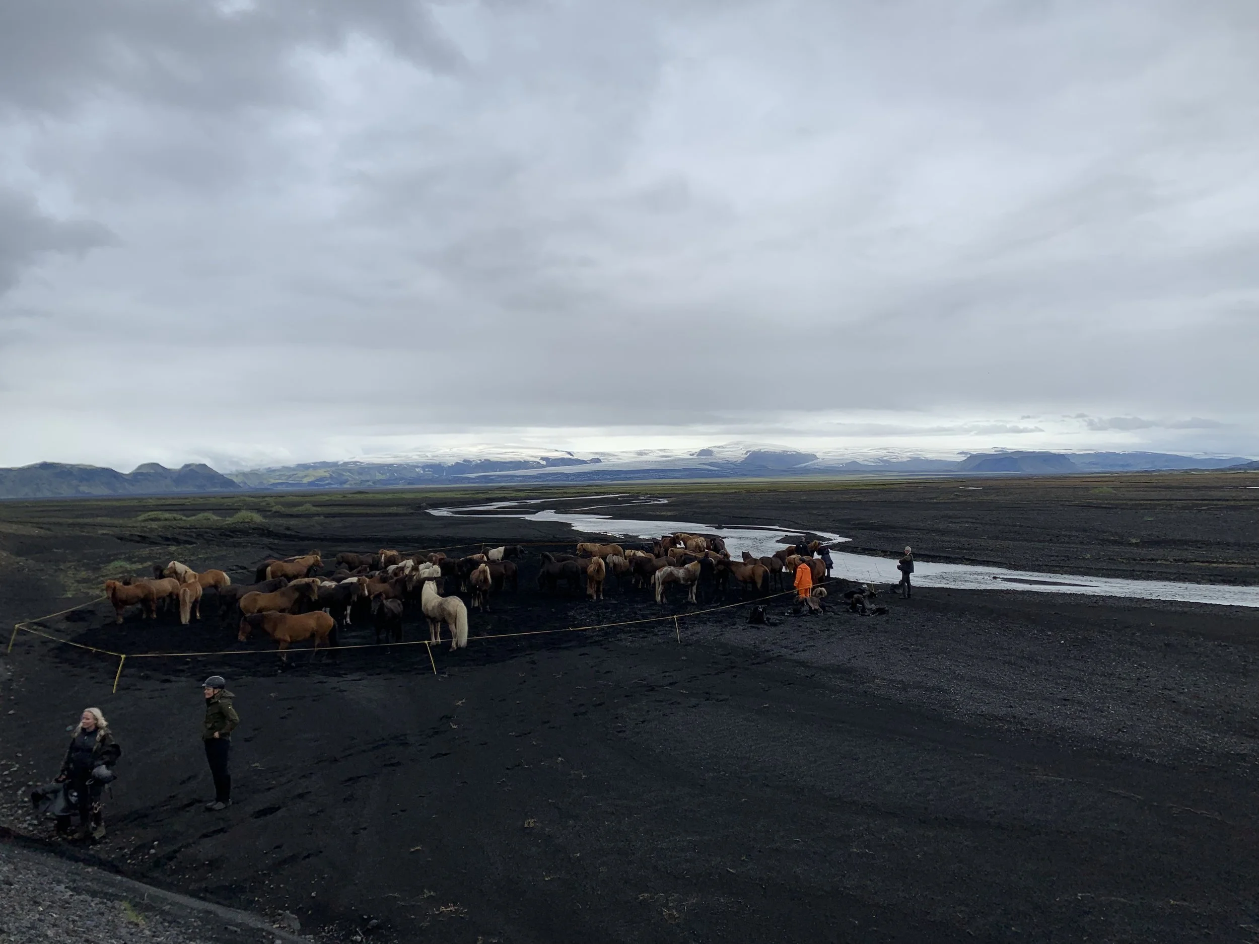 Our ride today takes us from Vík í Mýrdal through stunning landscapes to Hrífunes. We pass the mysterious Hafursey, cross lush meadows, and ford sparkling rivers before reaching our overnight stop at Hrífunes, where the horses enjoy excellent grazing. We lodge in a bright, spacious hall, giving the group a warm and friendly vibe called Tungusel.